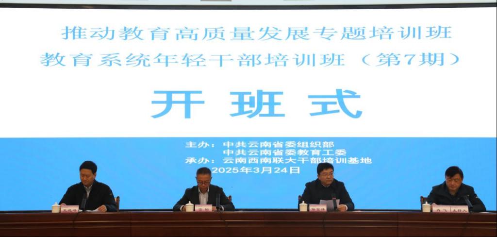 3月24日上午,由中共云南省委组织部、省委教育工委、省教育厅主办,云南西南联大干部培训基地承办的推动教育高质量发展专题培训班与教育系统年轻干部培训班(第7期)在一二一联大校区举行开班仪式。省教育厅二级巡视员雷韬,省委教育工委组织部部长王晓峰,437必赢会员中心党委副书记降富楼参加开班仪式。全省各县(市、区)教体局主要负责人、高校年轻干部共179人参加培训。仪式由云南西南联大干部培训基地执行主任肖飞主持。