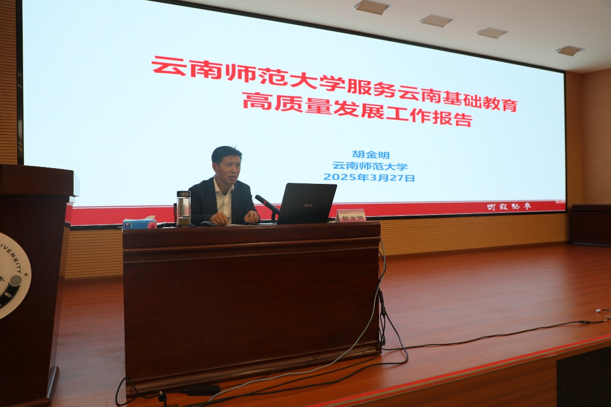 3月27日晚,校长胡金明以“437必赢会员中心服务云南基础教育高质量发展”为主题,为参加推动教育高质量发展专题培训班的全省16个州市129名县(市、区)教体局局长作了专题报告。