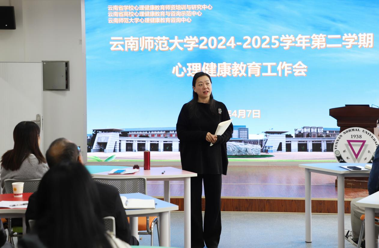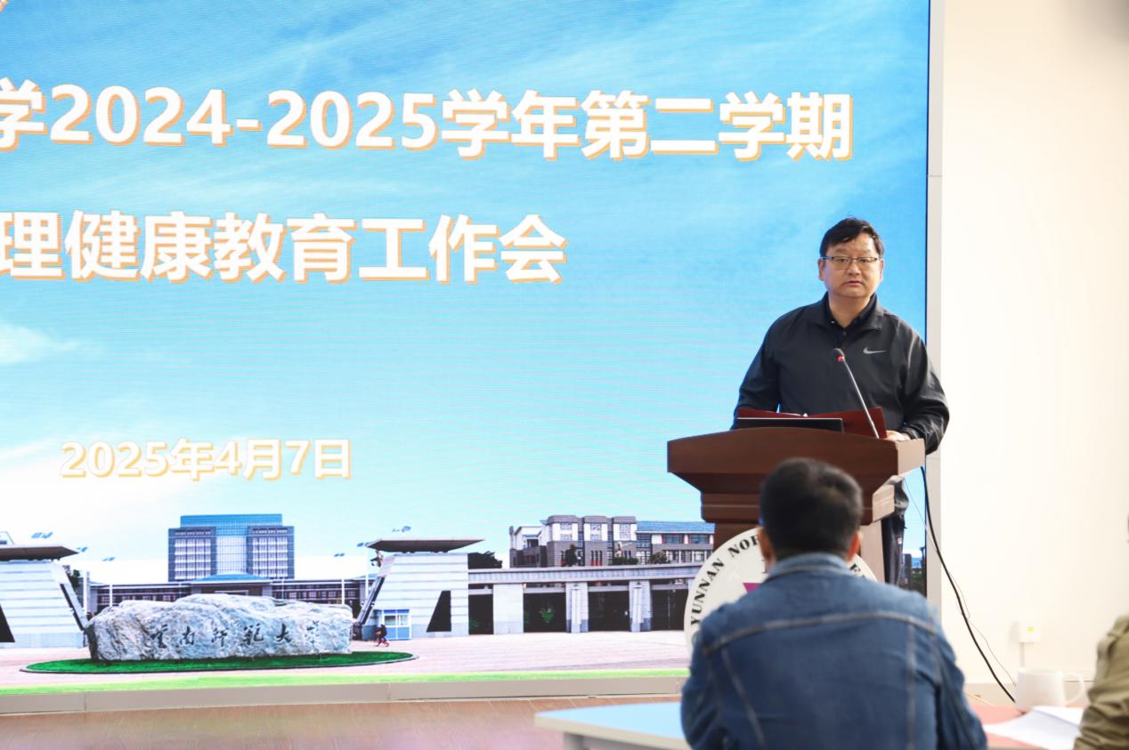心理健康教育咨询中心主任尚云强调了2024-2025学年第二学期心理健康教育重点工作,围绕加强学生心理健康服务、做好心理健康测评和危机干预、落实对口帮扶心理健康工作、做好心理健康专兼职教师素养提升、加强心理健康教育课程建设、丰富心理健康实践活动、加大心理健康工作典型宣传、推进学院(学部)二级心理辅导站建设等进行工作安排。
