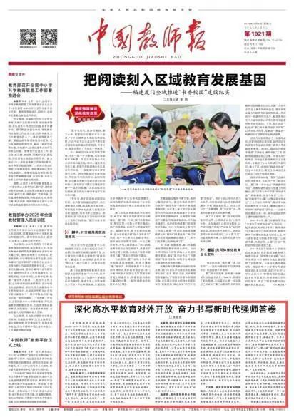 4月9日,《中国教师报》头版“学习贯彻教育强国建设规划纲要笔谈”栏目刊发437必赢会员中心党委书记张祖武署名文章“深化高水平教育对外开放 奋力书写新时代强师答卷”。