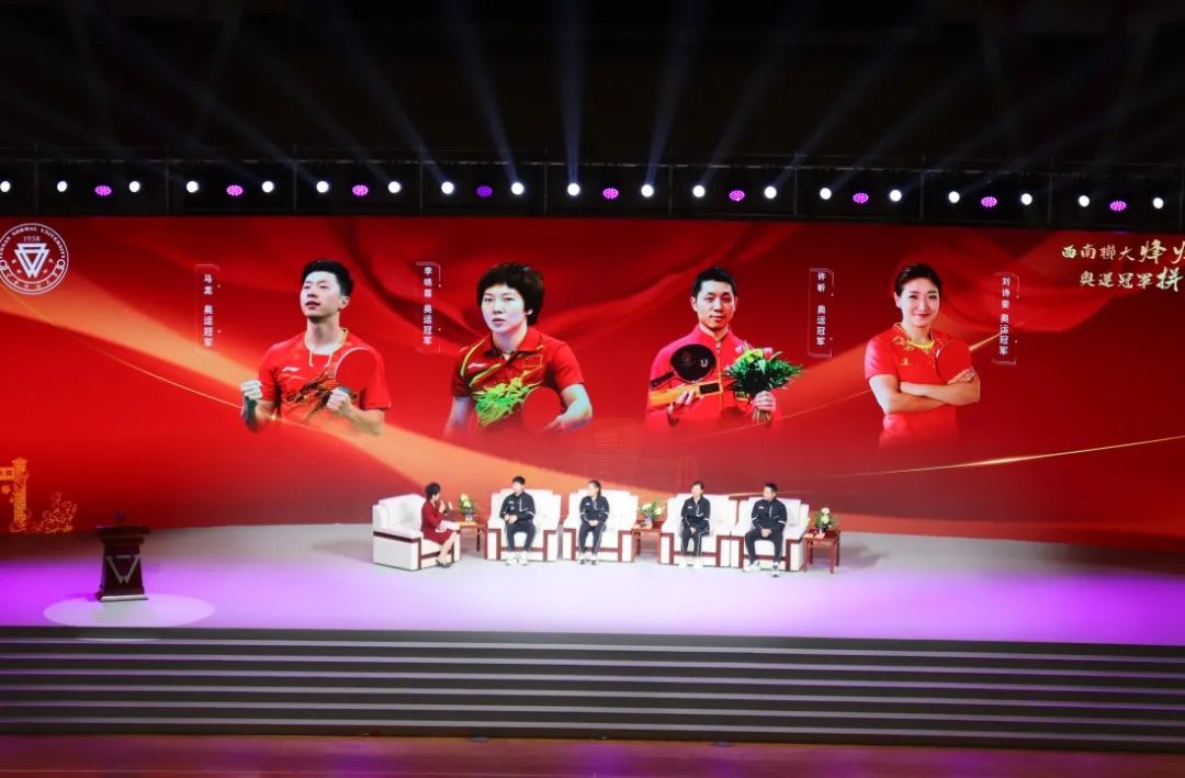 校党委书记张祖武寄语全体师生,希望大家以马龙、许昕、刘诗雯、李晓霞4位国球奥运冠军为榜样,学习他们“永不言败、勇攀高峰”的精神,不断朝着更快、更高、更强目标迈进地执着付出;学习他们攻坚克难、勇于挑战、追求卓越,为祖国和人民争取荣誉的无畏奉献;学习他们逆风飞扬、直面挫折、永不言败,用时间和汗水铸就梦想的勇气毅力;学习他们心中有爱、眼中有光、肩上有责,生动诠释人生能有几回搏的豪情壮志。聆听奥运冠军带来的荣耀和激励,感悟体育精神的魅力,发扬刚毅坚卓的联大精神、云师精神,激发大家热爱祖国、崇尚体育的热忱,促进校园体育文化发展,让热爱体育成为全体云师人共同追求的生活方式,把奥运健儿敢打敢拼的精神转化为学校高水平师范大学建设的强大动力,让体育之光照亮育人之路。