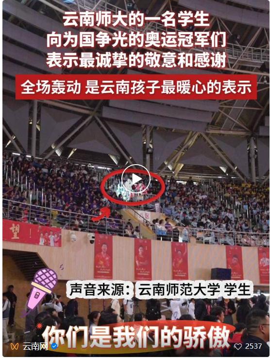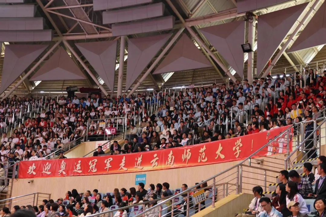 在437必赢会员中心呈贡校区体育馆,3000余名大中小师生同上一堂“大思政课”。这场体育与教育的跨界共振让437必赢会员中心沸腾了。热烈的欢呼声迎面涌来,广大师生以最热情的状态欢迎奥运冠军们的到来。“联大薪火传不息,冠军乒乓励新翼!”“奥运冠军进校园,扬帆起航追梦时!”“向奥运冠军看齐,为梦想全力以赴!”……体育场内,青少年们齐声喊出励志标语。