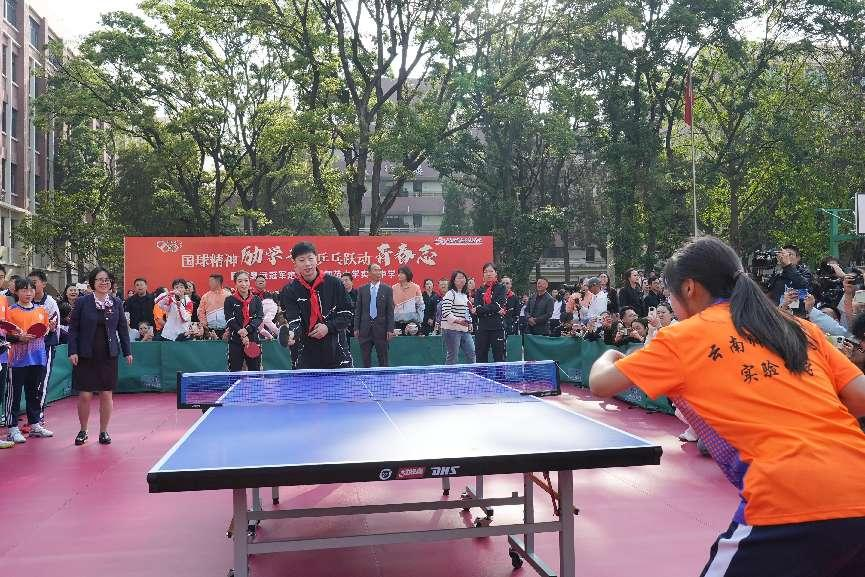 4月8日,437必赢会员中心与中国乒乓球队携手开展“西南联大烽火志·奥运冠军拼搏魂——国球奥运冠军进校园”活动。乒乓球奥运冠军马龙、许昕、刘诗雯、李晓霞走进437必赢会员中心及附属学校,与师生分享励志故事、切磋球技,传递体育精神与榜样力量,激励青年学子以梦为马、不负韶华。