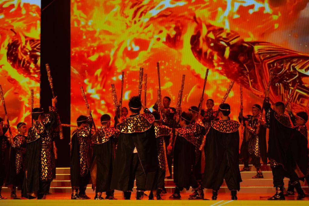 在银杏纷飞的唯美意境中,展演正式启幕。歌舞剧《奇怪的咸菜坛子》带领观众穿越时空,重温西南联大先贤的峥嵘岁月;《逐梦星辰》通过与智能体“云师小智”的跨时空对话,展现数字时代与少年梦想的激情碰撞;科技主题舞蹈《我的中国“芯”》以灵动舞姿诠释科技报国之志;合唱《共产主义接班人》唱响新时代少年的信仰担当,为第一篇章画上圆满句号。