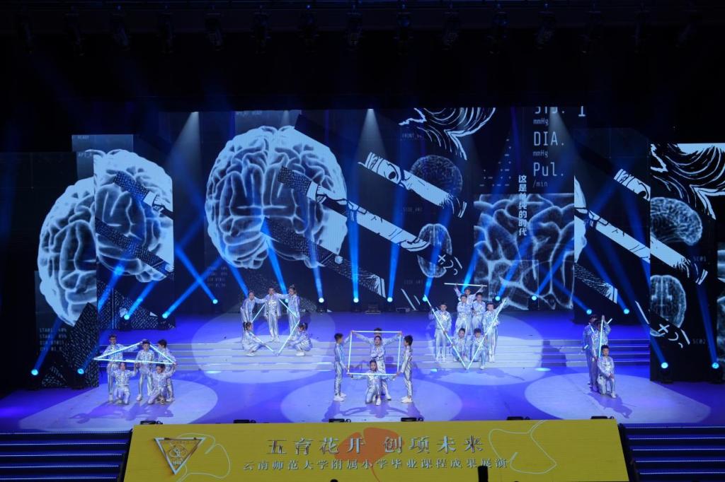 《寻踪幻影》以跨学科项目展示,内容丰富,尽显创新协作魅力;《醉笔玉盘》穿越古今对话李白,以“朋友圈” 吐露报国情怀;《竞界无疆》分享运动高光时刻,诠释拼搏与团队精神;《粹韵流芳》融合多剧种展演,让传统文化焕发新韵;《滇之眼》呼吁保护滇池,在劳动实践中探索科学之美;《数学Disco》数字跃动成欢快音符,公式化作灵动舞步,为抽象思维注入无限活力;让枯燥的数字“跳”起来!《名著漫游记》创意演绎名著,让学生浸润在经典芬芳之中;压轴节目《我们在一起,就会了不起》的大合唱,不仅展现了项目式学习带来的团队凝聚力,更彰显了学校"五育融合"的育人成果。