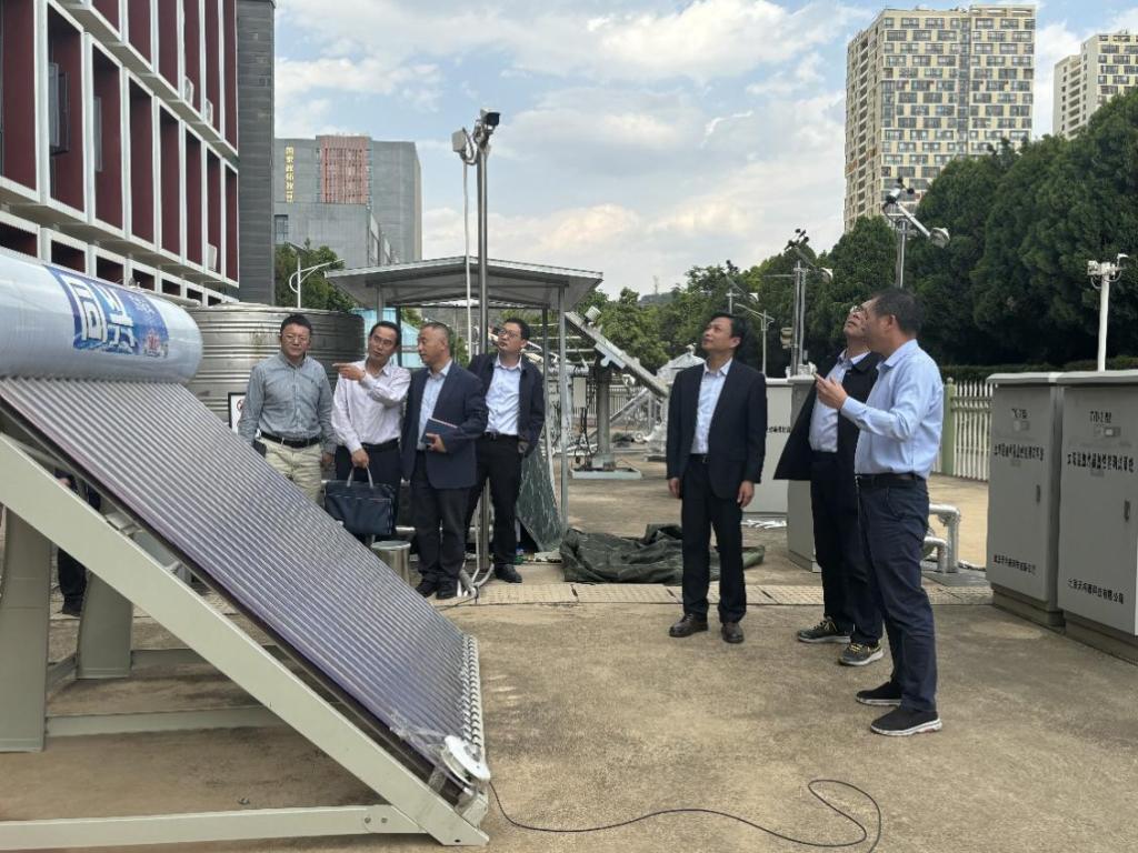 交流期间,谢华清一行参观了能源与环境科学学院获得绿色低碳标识的科研教学大楼、国家太阳能热水器质量检验检测中心和科研成果展。