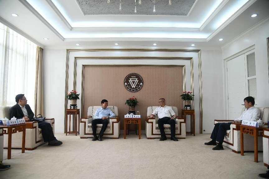 4月25日下午,上海第二工业大学党委副书记、校长谢华清一行到必赢官网调研交流。