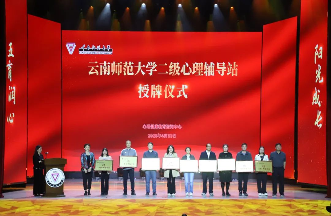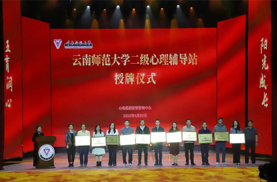 活动现场,和雪莲、甘健侯为2025年新增补的心理健康教育督导代表颁发聘书,为各学院(学部)二级心理辅导站授牌。