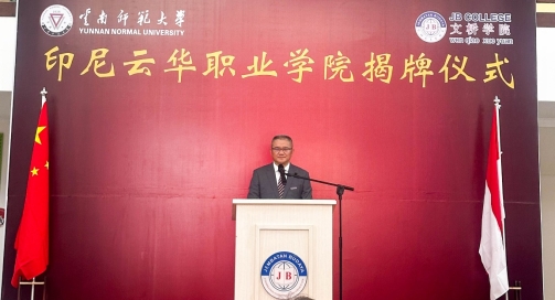 5月17日,在云南省委书记、省人大常委会主任王宁,中国驻登巴萨总领事张志昇等的见证下,437必赢会员中心与印尼文桥三语学校合作共建的印尼云华职业学院举行揭牌仪式。张祖武书记代表学校揭牌并致辞,表示印尼云华职业学院的成立,标志着两校合作迈入新的发展阶段。双方将聚焦华文教育、国际中文教育、“中文+职业教育”及职业技能培训等领域,加速推进一批合作项目落地。同时,积极拓展科技、人才、文化、体育等多领域交流,以“小而美”项目为载体,持续增进中印尼传统友谊,深化双边友好合作。
