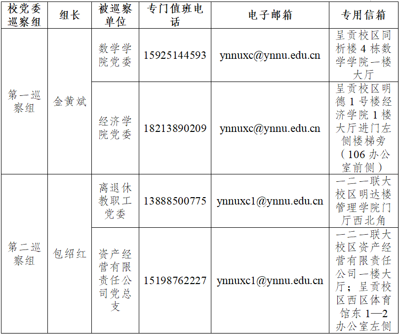 校党委巡察组将在被巡察单位工作1个月左右,期间设立专门值班电话、电子邮箱和专用信箱,主要受理反映被巡察党组织领导班子及其成员、重点岗位人员问题的来信来电来访,重点关注违反政治纪律、组织纪律、廉洁纪律、群众纪律、工作纪律、生活纪律以及中央八项规定精神等方面的问题反映。校党委巡察组受理信访时间截止2025年6月19日。