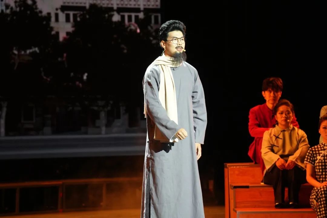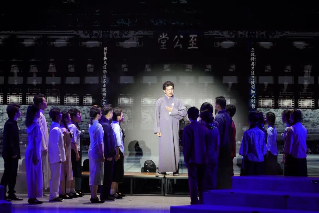 舞台广播剧《闻一多》以历史史实为主线,通过创新融合广播剧声效艺术与舞台视觉呈现,为观众打开了一扇穿越时空的窗口,带领大家重返烽火岁月,深刻感受一代学人的铮铮铁骨与家国情怀。