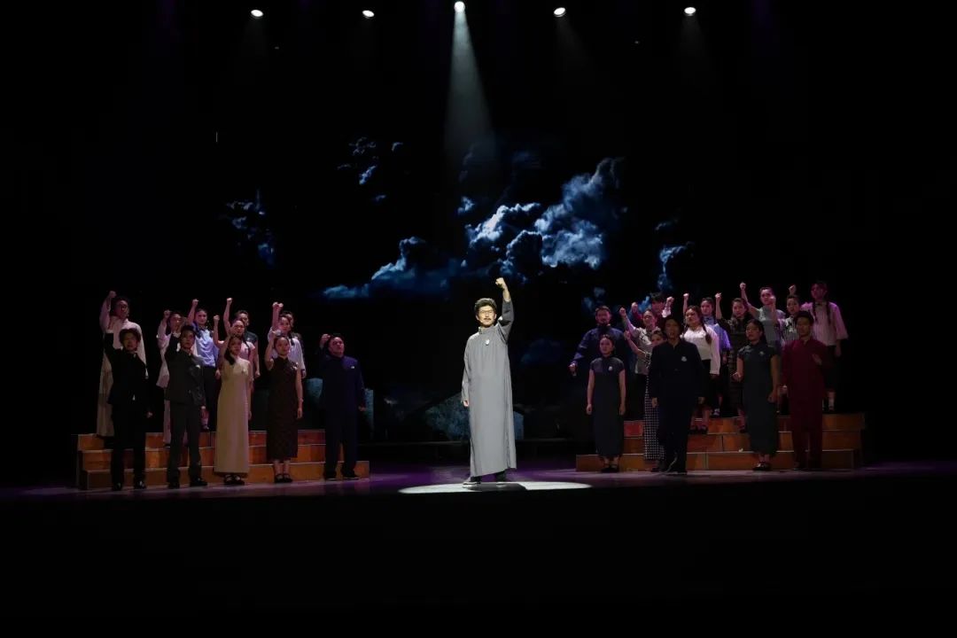 剧目生动聚焦闻一多先生从清华教授成长为民主斗士的生命历程。剧中,卢沟桥事变后,闻一多毅然放弃休假,怀着“家国不能两全”的坚定信念,告别妻儿奔赴长沙临大任教,展现出知识分子在民族危亡时刻的使命担当;“湘黔滇旅行团”三千里徒步南迁途中,他不仅带领学生采集两千余首民间歌谣,更以文化的力量滋养抗战信念;在昆明大轰炸的危险场景里,他不顾个人安危冒死救援平民,还在电台激昂解读杜甫、王昌龄诗篇,用唐诗的力量唤醒民族血性;演出高潮部分,再现了闻一多先生的“最后一次演讲”。面对特务威胁,他在李公朴追悼会上发出“前脚跨出大门,后脚就不准备再跨进大门”的振聋发聩呐喊,将一位民主斗士的无畏精神展现得淋漓尽致。
