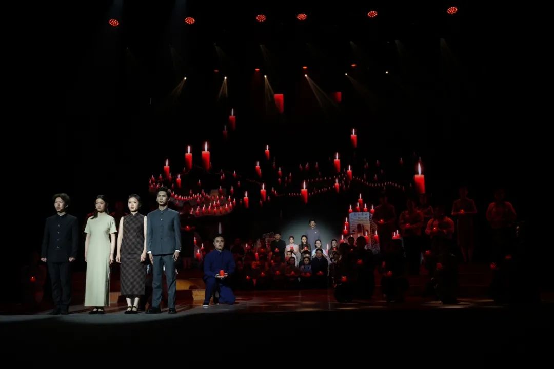 “语言有直击人心的力量,可以唤起当代青年的历史共鸣。”该剧导演、传媒学院语言传播系主任张齐说。演出尾声,当《红烛魂》歌声响起,红色烛光漫溢全场,这极具冲击力的一幕让全场观众为之动容。