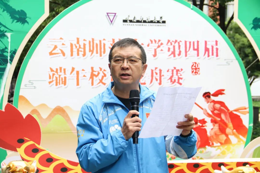 牛治亮在开幕式上指出,龙舟赛承载着纪念爱国诗人屈原的传统,体现了中华民族团结奋进、自强不息的精神。这项活动与学校“刚毅坚卓”的校训一脉相承,契合新时代青年“顽强拼搏、同舟共济”的品格。近年来,学校龙舟队在国内外赛事中表现优异,已成为展示云南民俗特色和云师青年风采的一张名片。校园龙舟赛既是体育竞技平台,也是弘扬爱国主义、集体主义的生动课堂。