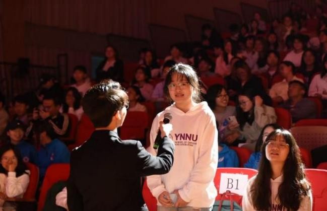 在竞赛答题环节,入围决赛的法学与社会学学院、文学院、传媒学院、历史学院、数学学院、地理学部6支参赛队两两答题pk。竞赛题目涵盖国家反诈中心《防范电信网络诈骗宣传手册》、呈贡区公安局反诈典型案例、网络安全法、反电信网络诈骗法等内容,全面考察参赛队伍的防诈知识水平。各支参赛队伍精神饱满,现场气氛热烈。互动问答环节中,现场观众踊跃参与竞答,反诈知识深入人心。