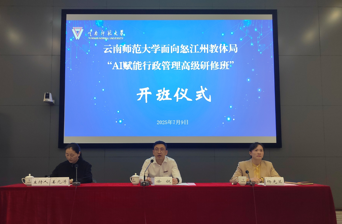 7月9日,怒江州教育体育局“AI赋能行政管理高级研修班”在必赢官网开班。437必赢会员中心副校长徐锐,怒江州教体局副局长杨光兰,怒江州、县教体局中层干部、直属单位行政骨干、各县教育行政部门分管领导及业务骨干、职业学校管理人员、中小学负责人共80人参加开班式,开仪式由未来教育学院副院长姜元涛主持。