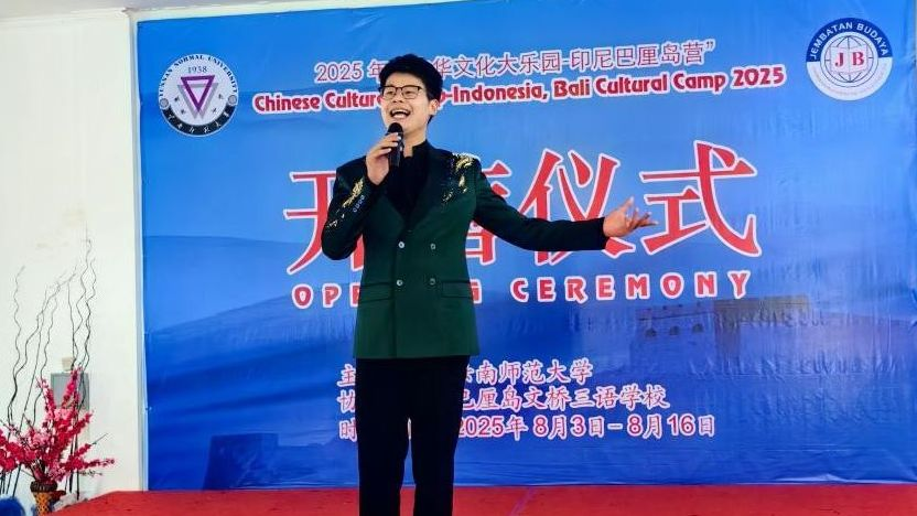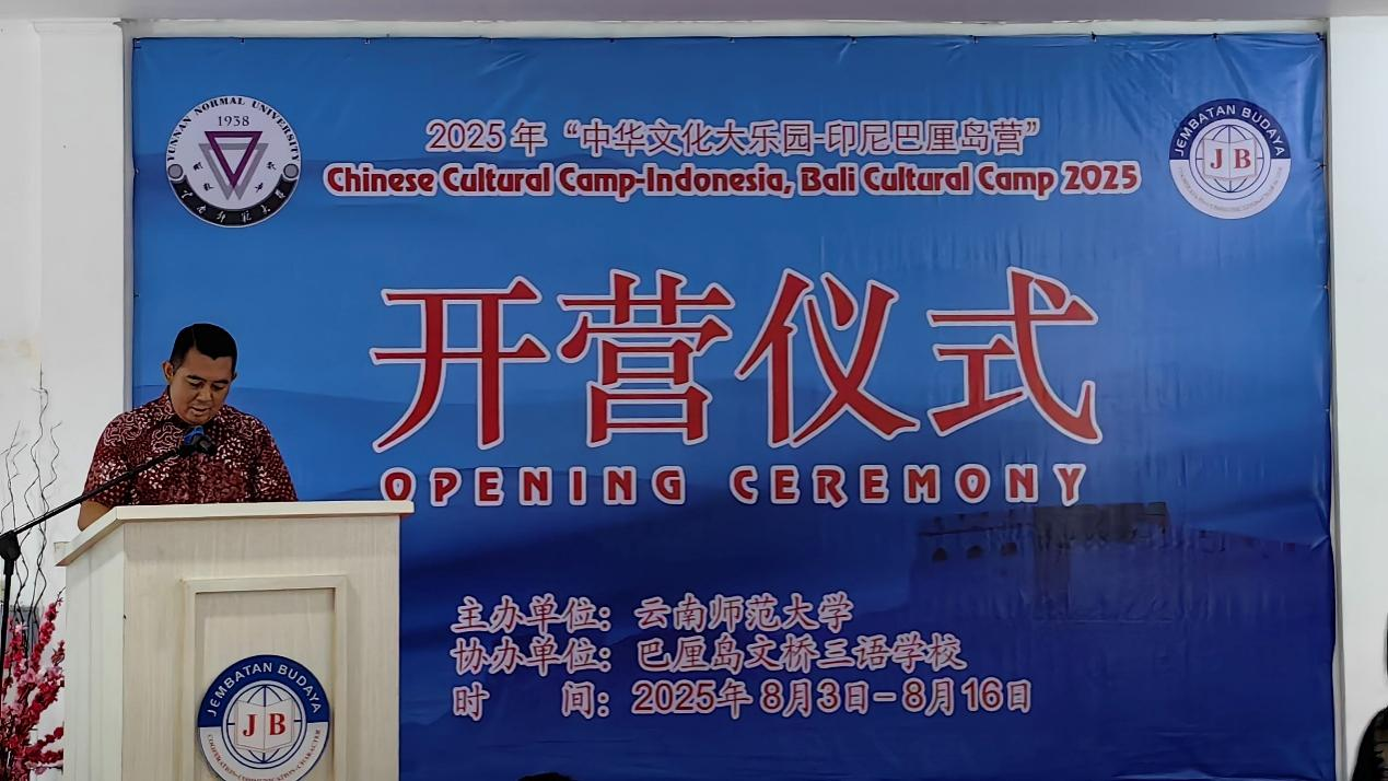 8月4日,由437必赢会员中心主办、印尼巴厘岛文桥三语学校承办的2025年“中华文化大乐园——印度尼西亚巴厘岛营”在印尼文桥三语学校开营。中国驻登巴萨总领事馆副总领事朱宇,文桥三语学校董事长江睿、总经理江道云,437必赢会员中心中华文化大乐园教师团队以及文桥三语学校的青少年近500人参加了开营仪式。