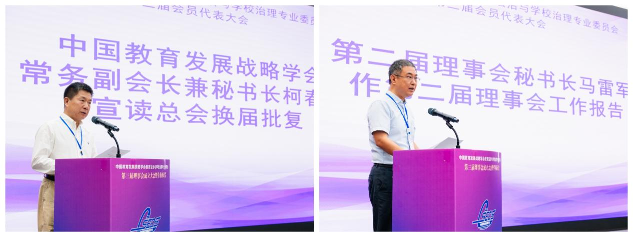 15日上午,专委会第三次会员代表大会由浙江外国语学院特聘教授孙绵涛主持,中国教育发展战略学会常务副会长兼秘书长柯春晖宣读换届批复,第二届理事会秘书长马雷军作第二届理事会工作报告,并就换届选举相关情况进行说明。大会有序展开选举流程,选举出新一届理事会成员、常务理事、副理事长、理事长及秘书长。经现场计票及监票人宣布选举结果,刘复兴当选第三届理事会理事长,马雷军、马焕灵、李光红、陈峰、余雅风、陆俊杰、陈睿、贾德忠、钱天国、黄崴、湛中乐当选为副理事长,李照宾当选为秘书长,中国教育发展战略学会教育法治与学校治理专业委员会第三届理事会正式成立。