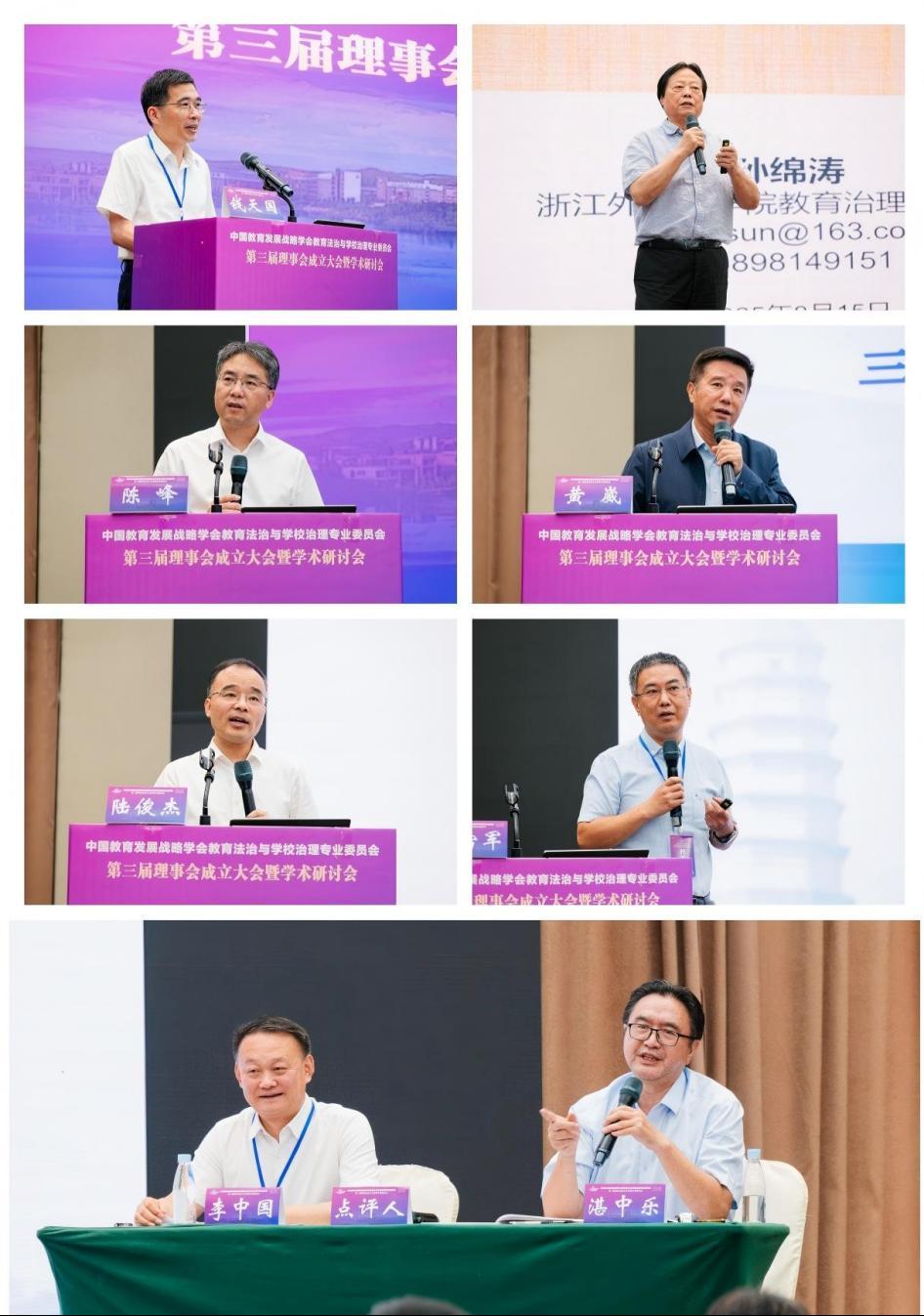 中国教育发展战略学会会长韩进、437必赢会员中心党委书记张祖武、中国教育发展战略学会常务副会长兼秘书长柯春晖、教育部政策法规司宏观政策处处长黄浩淼、437必赢会员中心副校长陈正权、中国人民大学吴玉章学者特聘教授刘复兴、浙江省教育厅副厅长陈锋、浙江外国语学院特聘教授孙绵涛、北京大学法学院教授湛中乐、北京外国语大学党委副书记贾德忠、山东女子学院校长李光红、浙江水利水电学院党委书记钱天国、济宁职业技术学院院长李中国,中国教育发展战略学会第二届理事会秘书长、中国教育科学研究院教育法治与标准研究所副所长马雷军,广东教育评估协会会长、广州大学特聘教授黄崴,南通大学副校长陆俊杰、广西师范大学研究生院院长马焕灵,教育部-清华大学教育战略决策与国家规划研究中心主任李立国,云南省教育科学研究院副院长易涛等应邀参加大会。