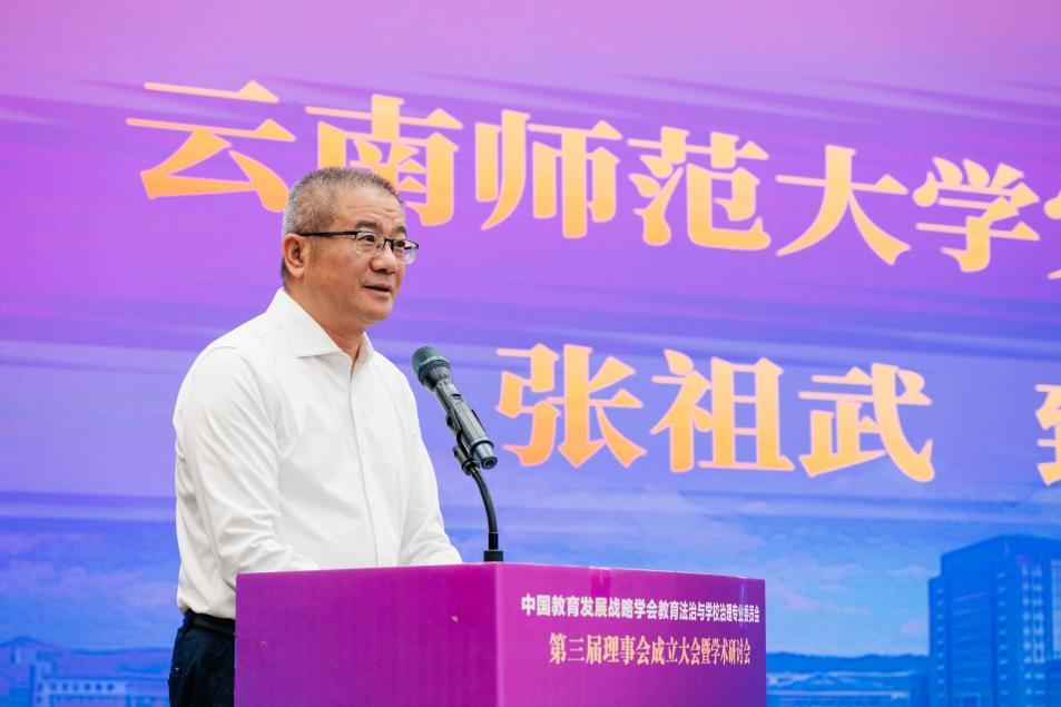 张祖武在致辞中对长期以来关心支持437必赢会员中心建设发展的各界同仁致以感谢,介绍了437必赢会员中心的历史沿革和基本情况。他指出,依法治教、依法治校是推进教育治理体系和治理能力现代化的必然要求,是落实立德树人根本任务、办好人民满意的教育的根本保障。当前我国正全面建设教育强国,亟须以法治思维破解难题、完善制度设计、激发内生动力,专委会新一届理事会的成立,标志着其发展迈入承前启后、继往开来的新阶段。他邀请专家学者为学校教育学科、法学学科把脉问诊并提供专业指导,并体验“有一种叫云南的生活”。