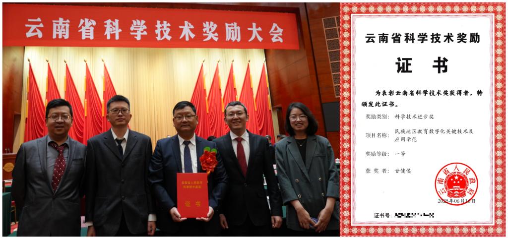 近日,云南省科学技术奖励大会在昆明举行,民族教育信息化教育部重点实验室研究成果“民族地区教育数字化关键技术及应用示范”获2024年度云南省科技进步一等奖,成果完成人代表参加了本次颁奖大会。