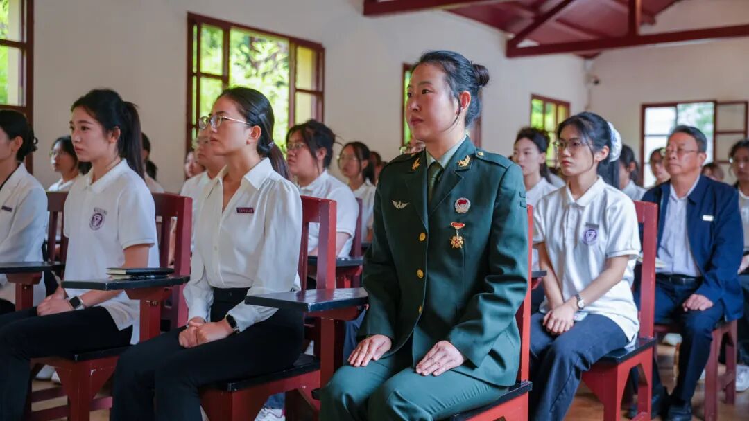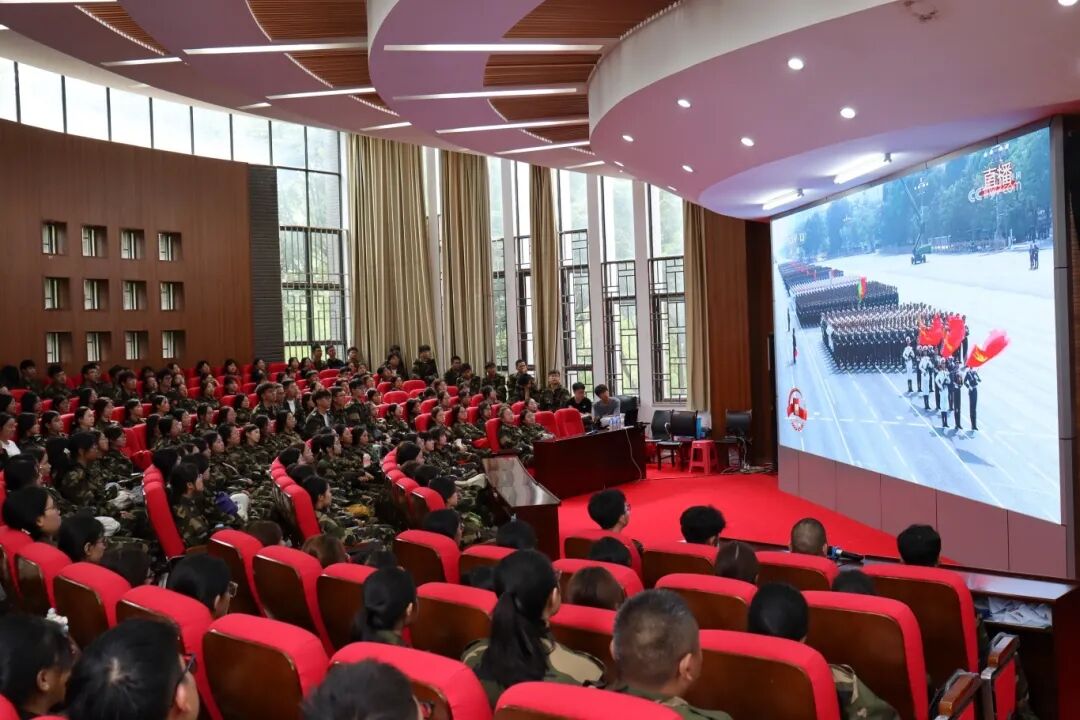 在西南联大复原教室,收看直播的管理学院审计专业研究生张睿贤的眼泪一直在眼眶里打转。曾在西藏服役的她说:“我为祖国的繁荣富强感到无比骄傲、无比自豪。”张睿贤说,云师大每个新生都要学习联大历史。学校有一座纪念碑,碑上刻着834名参军联大学子的名字。联大学子从军报国,奔赴抗日前线;外文系学生担任军事翻译;工学院增设《兵工学》《要塞建筑》等战时课程,培养军事技术人才;师生开展抗战宣传、募集捐款、代写士兵家书……被联大师生投身抗战的故事深深触动的张睿贤,在大二时参军入伍,服役期间获得“优秀义务兵”荣誉。从保家卫国的战士到读书报国的云师学子,变的是身份,不变的是刻在骨子里的责任与担当。