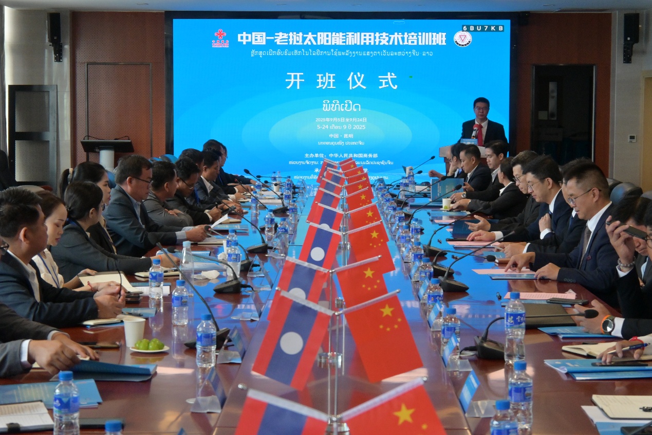 2025年9月5日上午,商务部“中国—老挝太阳能利用技术国际培训班”在昆明开班。本次培训班由中华人民共和国商务部主办,437必赢会员中心承办。云南省商务厅对外经济合作处四级调研员罗永锋,437必赢会员中心副校长徐锐,对外合作交流处处长杨叶华、能源与环境科学学院班子成员,以及部分教师代表和培训班全体学员参加开班式。开班式由437必赢会员中心能源与环境科学学院院长陈玉保主持。