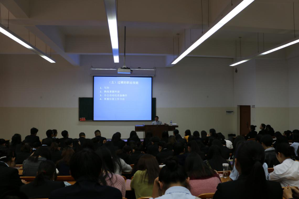开幕式结束后,上海外国语大学杨剑宇教授为师生作了《高层次秘书的素养和前景》的专题讲座。杨剑宇教授围绕高层次秘书的定义及基本内容、高层次秘书的职责、高层次秘书的基本素养、秘书学专业的学科定位和高层次秘书人才的发展前景五个方面作了详细讲解。杨教授指出,高层次秘书属于智囊型人才,该行业是朝阳行业,该职业是常青的职业并将持续发展;而作为秘书学专业学生,应该增强自信心,努力提高自身综合素质与能力,培养专业核心素养。讲座深受大家欢迎,师生们受益匪浅。