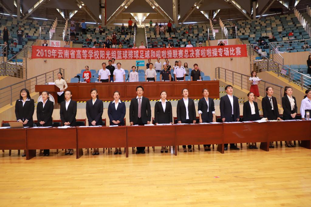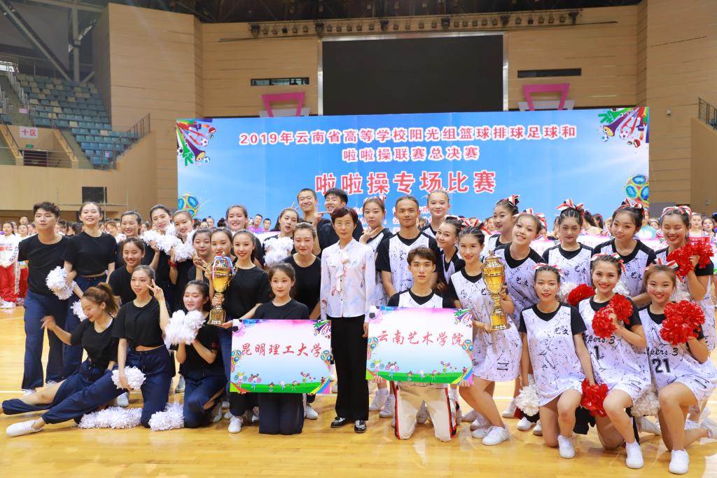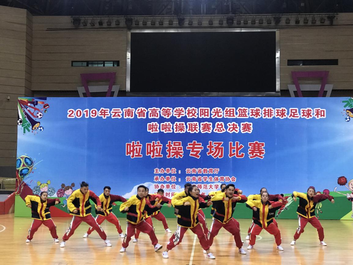 由云南省教育厅主办,云南省学生体育协会承办,437必赢会员中心协办的“2019年云南省高等学校阳光组篮球排球足球和啦啦操联赛”于6月14日在必赢官网呈贡主校区莲花体育馆举行最后的啦啦操专场比赛。