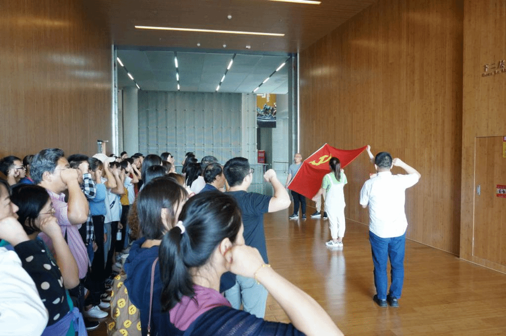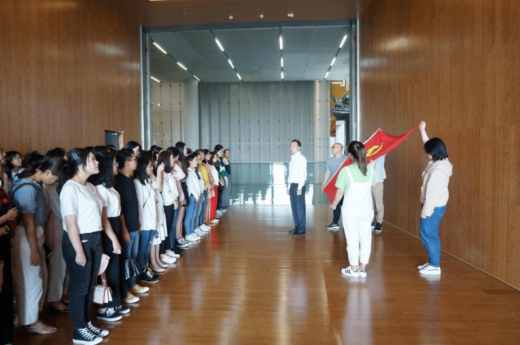 参观结束后,学院党委组织委员王友良还带领全体党员在鲜红的党旗下重温入党誓词,提醒大家不忘入党初心。学院党委书记张云在总结发言中教育引导全体党员师生悟初心、守初心、践初心,不断提高政治觉悟和政治能力,做到心中有党、对党忠诚,始终不渝为党的事业奋斗。