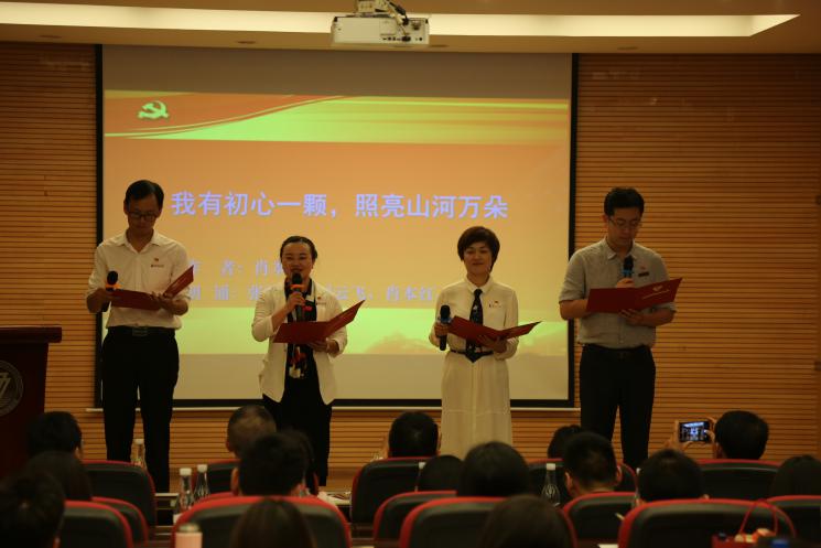 师生代表张宇、陈长瑶、叶烝萌和项天歌还通过诗歌朗诵《初心·使命》来阐述了中国共产党人的初心和使命、担当和奉献。