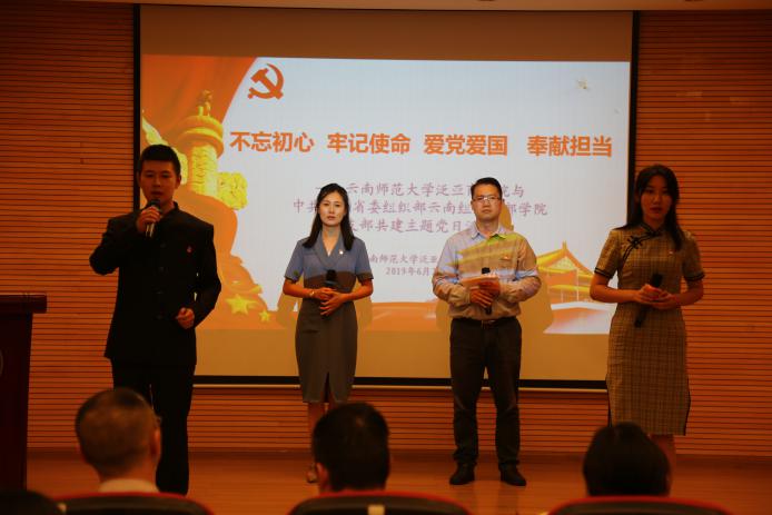 6月26日晚,437必赢会员中心泛亚商学院与省委组织部云南组织干部学院在泛亚商学院106报告厅开展“不忘初心、牢记使命、爱党爱国、奉献担当”主题党日活动。省委组织部云南组织干部学院副院长徐坚、王正,437必赢会员中心党委组织部部长蔡金红,泛亚商学院党政领导班子成员,双方学院党员、发展对象和入党积极分子等共86人参加了活动。活动由泛亚商学院副院长、教工党支部书记陈长瑶主持。
