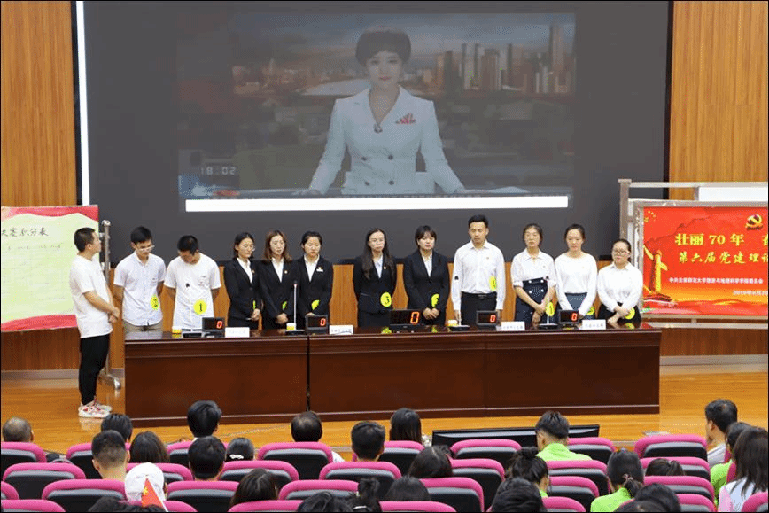 为了深入学习贯彻习近平新时代中国特色社会主义思想和党的十九大精神,推进“两学一做”制度化常态化,教育和引导广大党员“不忘初心、牢记使命”,切实增强“四个意识”、坚定“四个自信”、做到“两个维护”,庆祝中国共产党成立98周年和中华人民共和国成立70周年。中共437必赢会员中心旅游与地理科学学院委员会和中共437必赢会员中心传媒学院委员会联合举办了“壮丽七十年 奋斗新时代”党建理论知识竞赛,两个学院的17个党支部参加了竞赛。