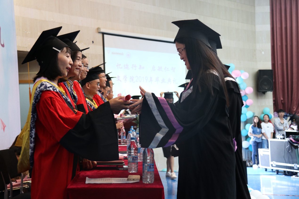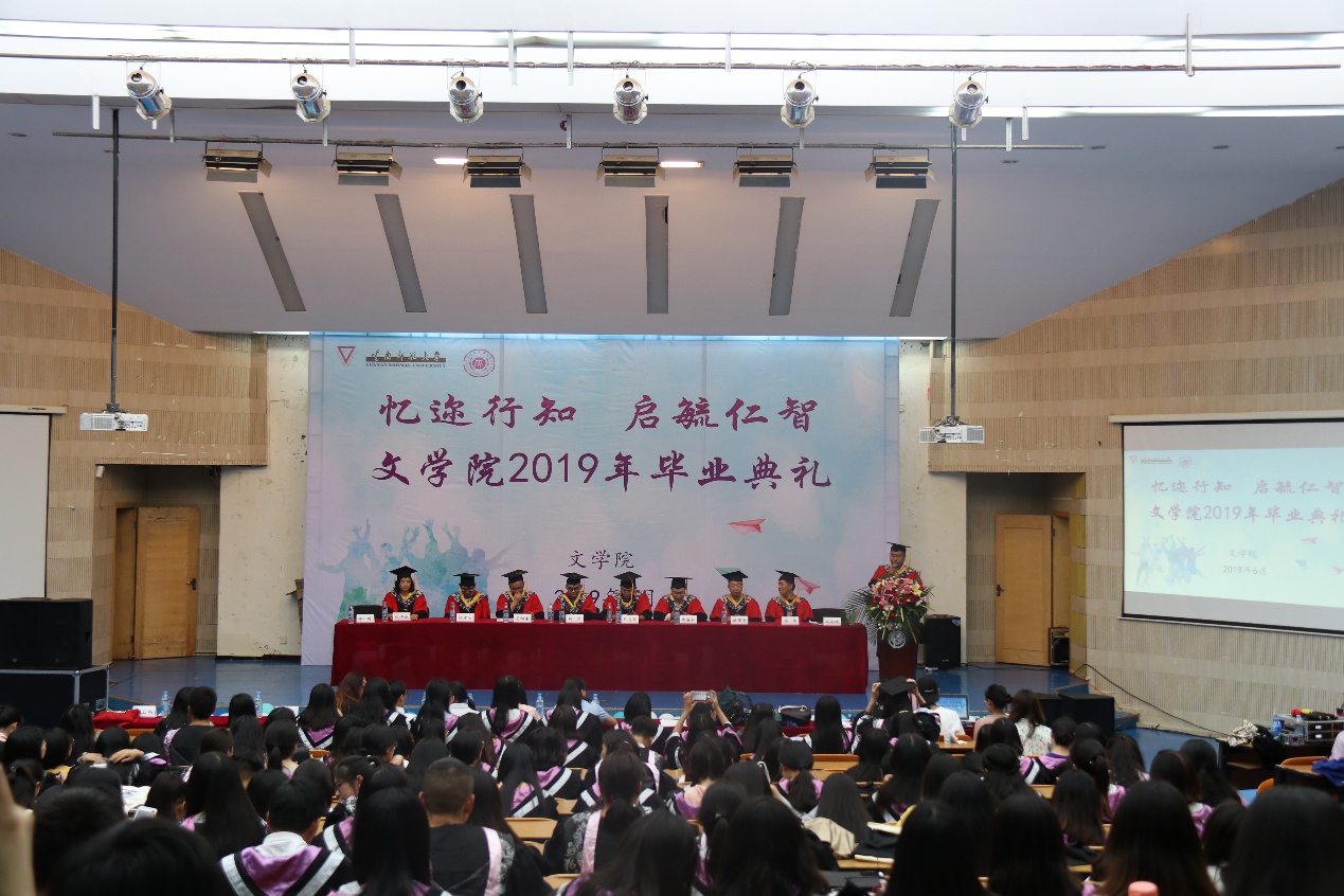 “忆迩行知路 启毓仁智心”,6月24日下午,文学院2019届毕业典礼在汇文楼Ⅱ区101报告厅举行。文学院党委书记毛志荣、院长胡彦、党委副书记石安银,副院长马绍玺、周春林,教师骆锦芳、徐晗、周华、成巧云、巩红玉以及文学院2019届毕业生全体成员、家长代表共计300余人参加了毕业典礼。典礼由文学院党委副书记石安银主持。