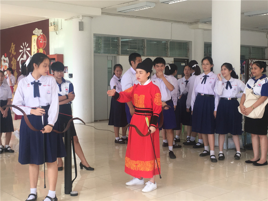 文化体验活动主要包括以“月”为主题的剪纸、射仪、书法和茶艺四项。剪纸活动中为契合中秋主题,老师准备了“玉兔”;茶艺则让同学们体会到了中国茶的清香与美妙;别开生面的射仪,深受大家欢迎,同学们纷纷排起队来争相体验;书法体验活动中,老师带领同学们写了一些与中秋祝福相关的词语。