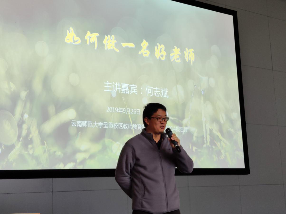 为凸显必赢官网教师教育的办学特色,进一步加强对师范生的就业指导力度,全面提升必赢官网师范生的综合素质和就业能力,“名师讲坛”第九期主讲嘉宾——云南省下关一中初中部开发区校区副校长、语文高级教师何志斌于9月26日在必赢官网呈贡主校区教师教育实训大楼Ⅱ区214报告厅做主题讲座,各学院带队教师、学生代表、就业处相关工作人员共计200人参加了本次讲座。