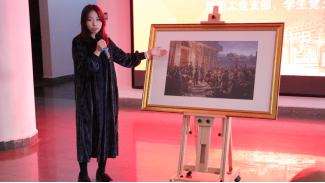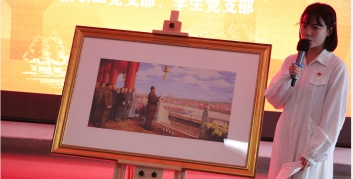 悟初心——“画中话”小党课红色经典美术作品赏析环节,用以画引历的方式,从点线面立体展开,分别邀请学院教师贺江、王征,学生党员张洛瑜、于艺带领大家赏析了《启航——中共一大会议》、《南昌起义》、《走过岷山》、《开国大典》四幅红色经典主题油画,四位师生从现实切入历史,生动形象地介绍红色革命经典艺术的创作过程和创作背景,并将画作中波澜壮阔的历史与情节娓娓道来,从美术专业角度为大家阐释了作品的蕴含的独特思想价值、美学内涵,讲解者在进行自我教育的同时引导大家将美术作品生动直观的视觉冲击转化为心灵震撼,引发思想共鸣,师生党员在提升专业素养的同时也加深了对革命史的了解。