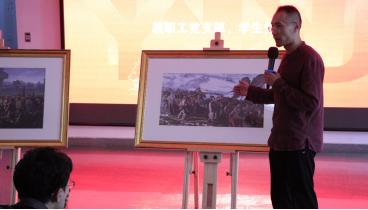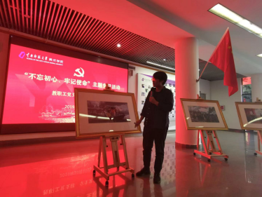 十月的校园,红色映金秋。10月10日下午,美术学院教职工党支部与学生党支部党员在学院一楼党员教育活动区,共同举行“不忘初心、牢记使命”主题党日活动。红色的国旗、红色的党史展板整齐排列,红色LED屏将整个大厅映衬得喜庆而热烈。师生党员共50余人参加了活动,活动由教职工党支部书记李雪岳老师主持。