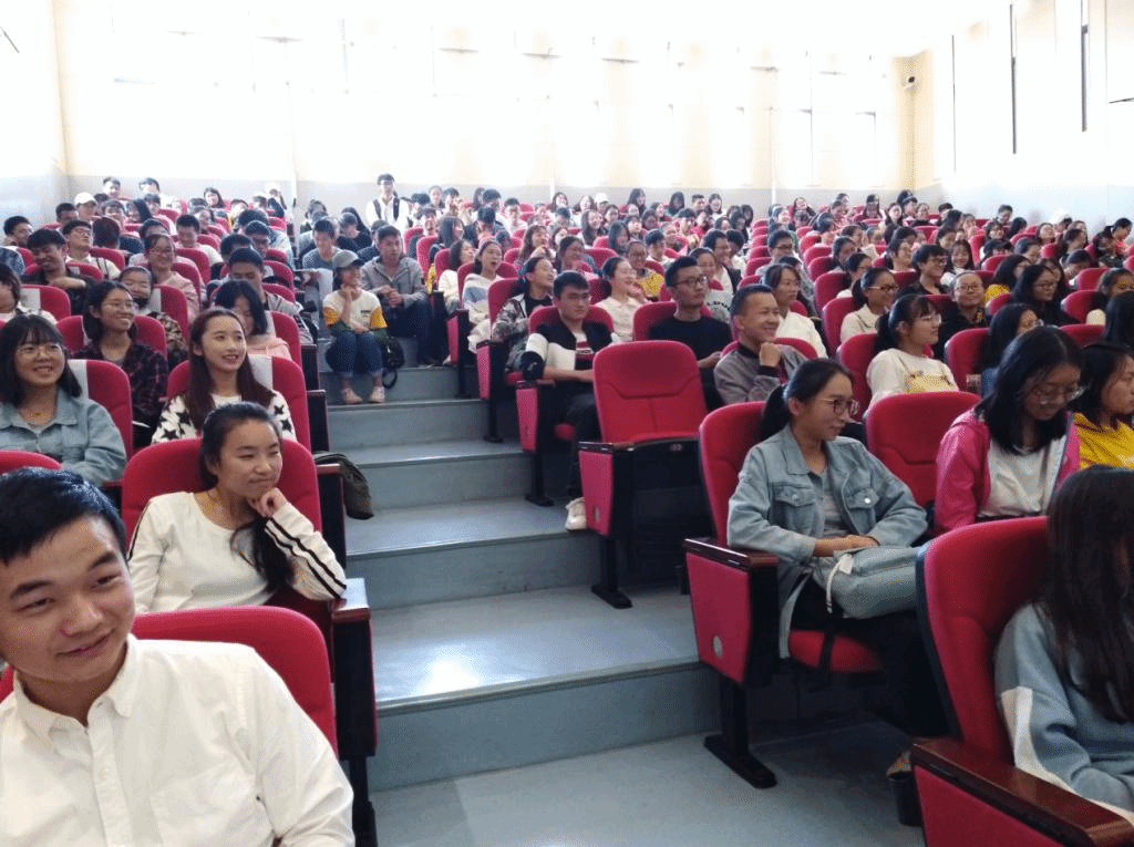 周加超校长以“我和我的孩子们”为主题,从展示坝心乡中心学校所在位置、校园面貌和教学条件开始,通过分享自己多年的从教经历和内心感受,告诉在场同学:“学校虽小,但却是成就我的大舞台。”接着,结合437必赢会员中心近几年对外发布的毕业生就业数据,从毕业生的就业流向、教师工资水平及福利待遇、社会认可度等维度分析教师行业总体情况和未来发展前景,旨在引导同学们对教育行业的职业认同感和未来就业的信心。最后,围绕“我与孩子们共同成长”这条主线,结合中小学教育现状和自己在乡镇学校所经历的典型案例,从“控辍保学”这个角度向在场同学们诠释什么样的教育才是让教师愉快的施教,让学生健康快乐的成长。