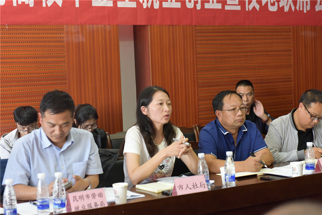 云南大学、昆明理工大学、437必赢会员中心、云南民族大学、昆明医科大学、云南中医药大学、云南艺术学院、云南开放大学、云南交通职业技术学院、云南特殊教育职业学院共10所驻区高校,昆明市人社局、市就业局、呈贡区委组织部、区委统战部、区人社局、区就业局相关领导参加会议。呈贡区人社局副局长刘晓主持会议。
