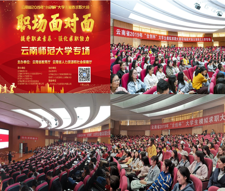 2019年10月31日下午,云南省2019年“台创杯”大学生模拟求职大赛系列活动之“职场面对面”在我校呈贡校区汇学2栋101报告厅举行。该活动是云南省教育厅和云南省人力资源和社会保障厅主办的“云南省2019年‘台创杯’大学生模拟求职大赛”的重要组成部分,由主委会组织省级就业主管部门领导、高校就业指导老师、企业人力资源专家到校围绕职业常识、就业准备、择业技巧等方面开展面对面指导和交流活动。
