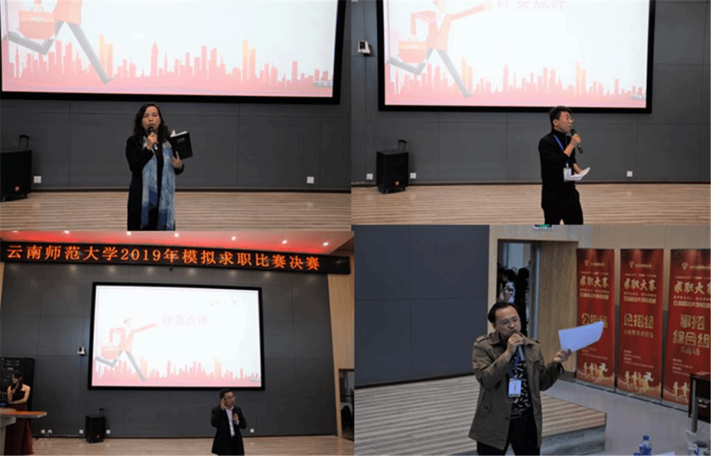 云南农业大学招生就业处副处长张东艳、导氮公考云南分校校长吴宪、昆明市教育局办公室副主任罗静波、昆百大集团人力资源总监杨卫东等老师分别从求职实际、招聘流程、就业政策、面试技能等方面做了精彩总结,他们根据实际工作经历,用参赛选手事例进行举例说明,提出共性问题并对参赛选手个别情况进行分析,以提醒同学在后续的学习中吸取经验教训,改进学习方法,提高学习效率,提升就业竞争能力,实现个人价值的同时,为社会创造价值,做出贡献。