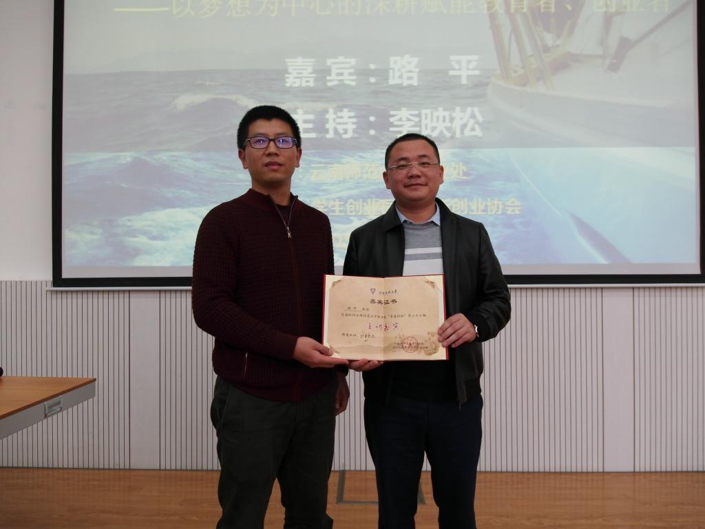 讲座开始前,就业处李映松老师为路平老师颁发讲座嘉宾纪念证书。