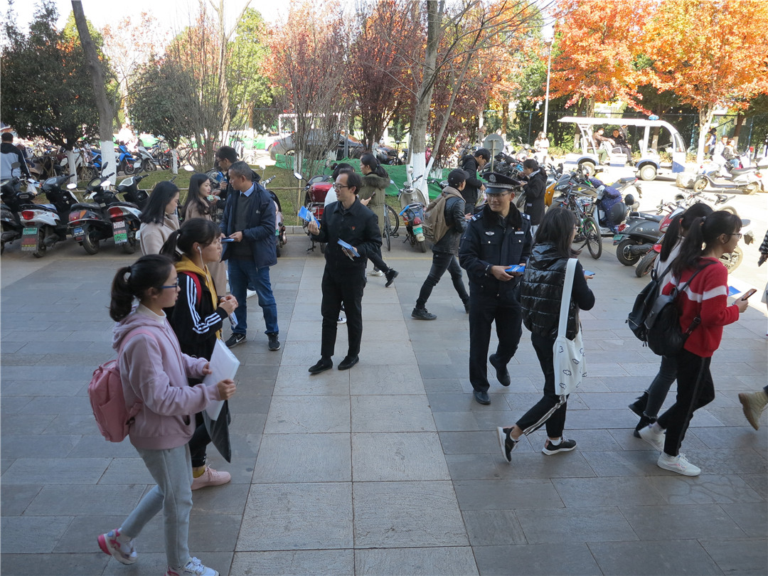 在活动现场,三个支部的党员分别采取在东区设置安全宣传展板展示、发放安全宣传单、现场答疑解难和讲解法律常识等多种形式进行宣传教育。党员同志耐心细致解答学生们提出的相关问题和讲解相关安全常识,党员志愿者和工作人员向师生发放防范“网络电信诈骗”等安全宣传资料,活动场面气氛活跃。整个活动共发放宣传资料2万余份,使广大师生员工从中受益。