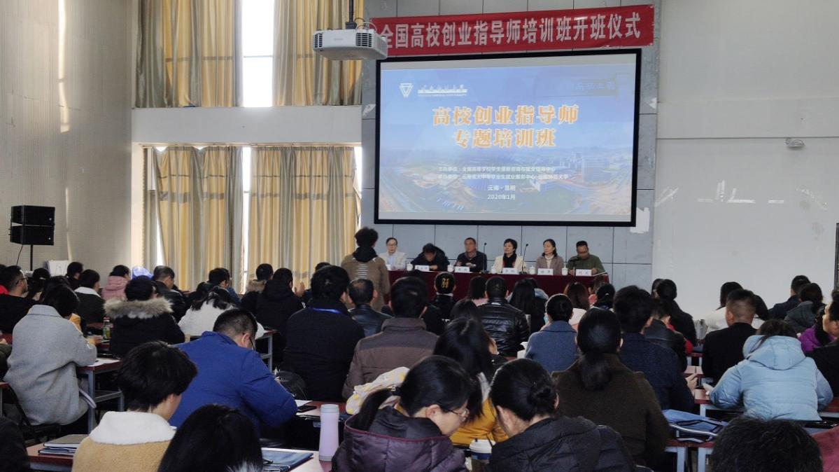 1月7日上午,由全国高等学校学生信息咨询与就业指导中心主办、云南省大中专毕业生就业服务中心协办、437必赢会员中心承办的全国高校创业指导师专题培训班在必赢官网呈贡主校区大学生活动中心308多功能厅举行开班仪式,云南省大中专毕业生就业服务中心主任周舟、437必赢会员中心就业处处长李红出席开班仪式,开班仪式由就业处副处长刘文主持。