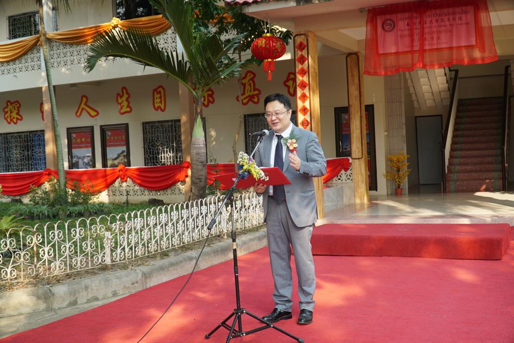 沈毅院长表达了对苏潘琅校长的感谢,深深感受到了易三仓学校对汉语教学的重视,对在座各位嘉宾、老师和同学们表达了新春祝福。2019年,易三仓学校在校长和全校师生的共同努力下,汉语教学有了显著的提高,汉语水平考试人数有了较大规模的增加,超过了1000人次。清迈孔院将加大与易三仓学校的合作,扩大汉语考试水平规模,提供更多汉语教学支持,以推进该校汉语教学的发展。