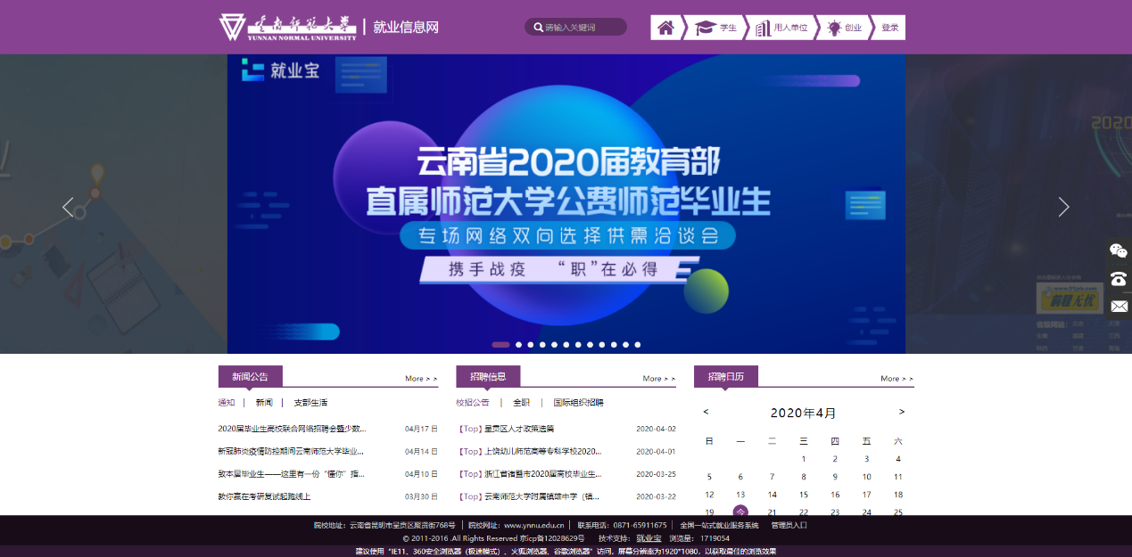 实施师范生公费教育,是国家加强师范教育、培养和造就大批优秀教师,加强教师队伍建设的重大举措,是构建我国新型教师教育体系、创新教师教育模式的一项重要改革。云南省高度重视公费师范生毕业就业工作,经省人民政府批准,成立了由省编办、省教育厅、省财政厅和省人力资源和社会保障厅组成的云南省公费师范毕业生就业工作领导小组,统筹协调全省公费师范毕业生就业工作。本次网络双选会,为用人单位和毕业生提供了“不见面、零接触”智能化招聘服务平台,加强了公费师范毕业生与用人单位的沟通和了解,坚定了公费师范毕业生回乡报效家乡教育事业的信念,搭起了双向沟通、双向选择的平台。