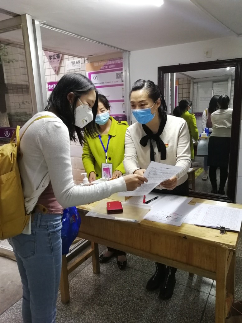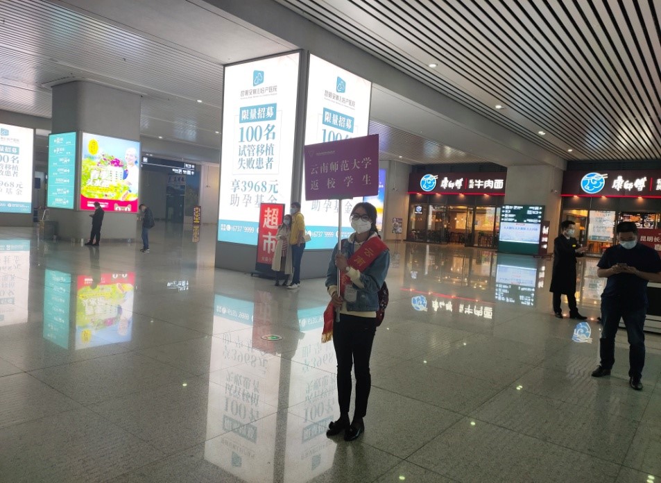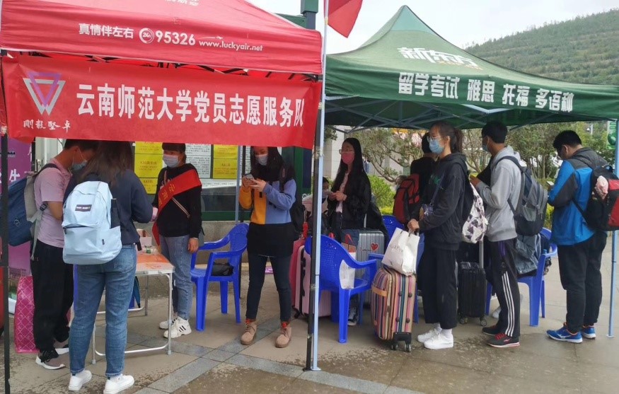 为做好学校2020年春季学期学生返校及各项防控工作,在学校党委领导下,后勤保障服务中心于5月27日组建党员志愿服务队,服务队队员由各学院师生党员和后勤党员组成,组建第2天,党员志愿服务队即奔赴昆明火车站、昆明南站、地铁口迎接返校学生,为学生返校做好服务工作,让返校学生第一时间感受到学校的真情与温暖。