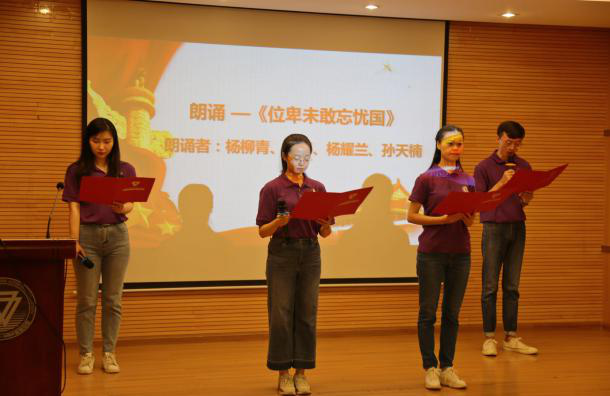 杨柳青、孙天楠、李智、杨耀兰四位同学还朗诵了诗歌《位卑未敢忘忧国》。