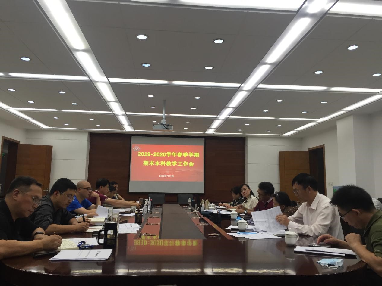 7月7日下午,教务处在行政楼第一会议室召开2019-2020学年春季学期期末本科教学工作会。会议由教务处副处长徐锐主持,各学院分管教学副院长,教务处、评估中心科级以上人员参加会议。